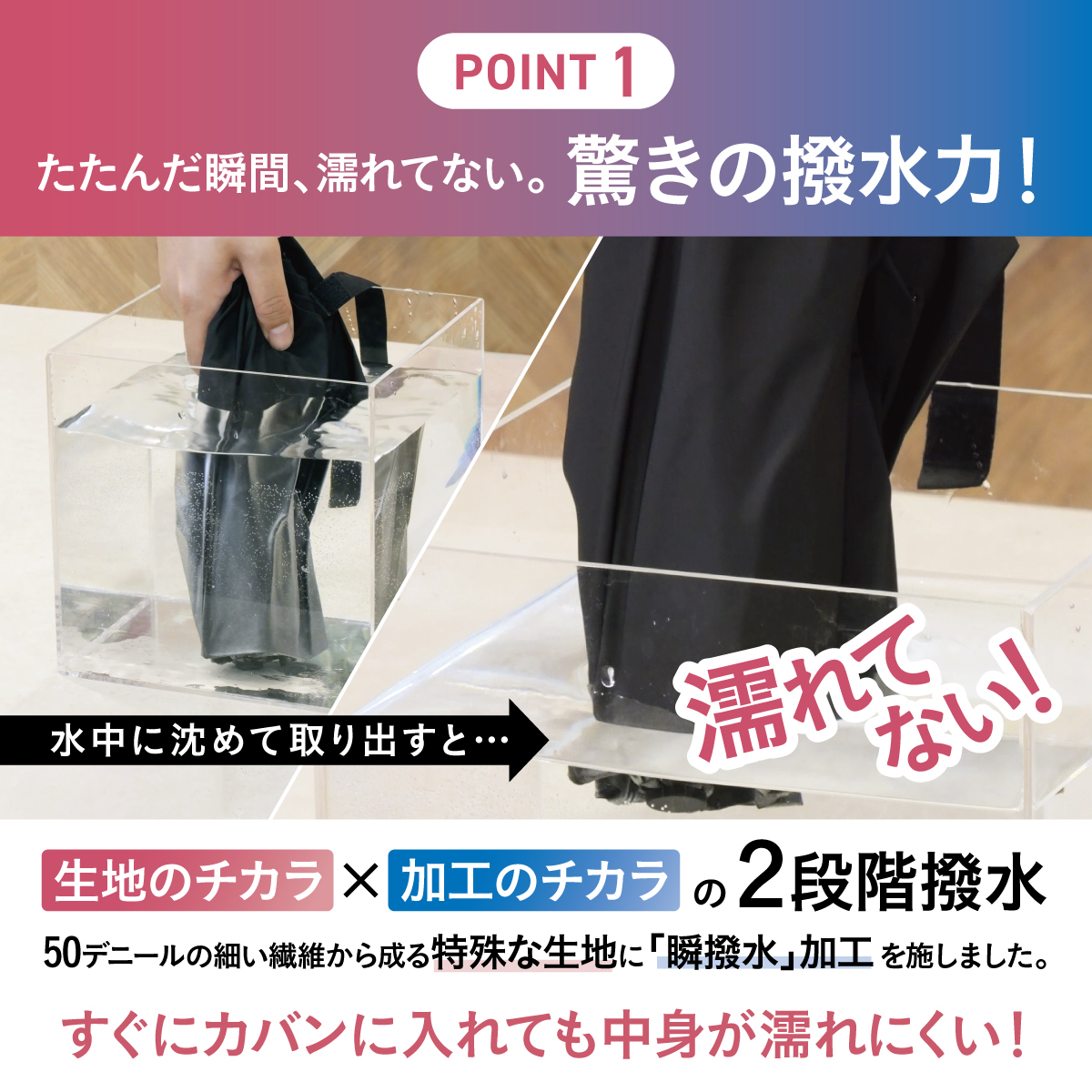 | サイズ | 開いた時の本体サイズ:W85*H250*D85 本体重量:199g 親骨の長さ:50cm 親骨の数:5本 広げた時のサイズ:85cm |